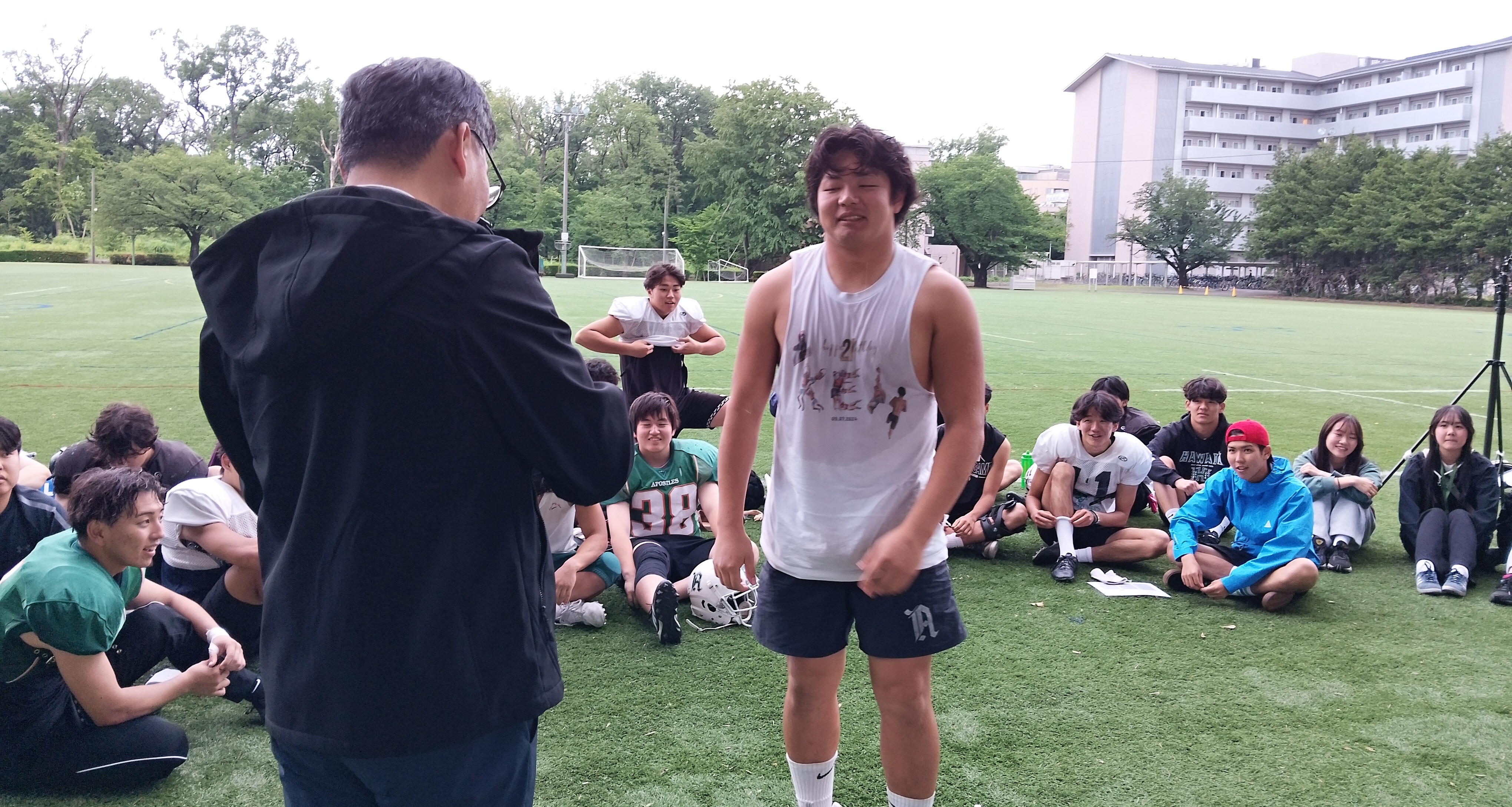 長谷川総監督:何より、熱心な応援、.OBコーチの献身に感謝したい。チームはいかにも2部の強豪だぞと言う「安定感と自信」を見せつけた。調整が必要な箇所も見いだせて、次が楽しみだ。3Qで押されたが、やるべき事、やってきた事を、しっかりとやってくれた。昨日までの練習がいかに充実していたかを感じさせる試合となった