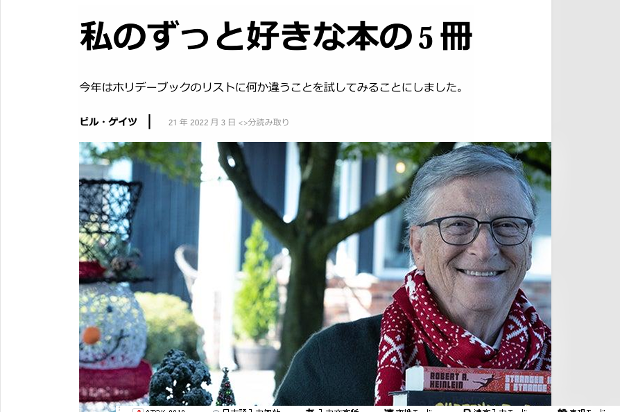 ちなみに同氏は2022年のブログ「人生を通して好きな5つの本」に本書も取り上げ、京都の図書館にも寄贈したことで、読書会に話題を呼んだ。「テニスをしない人でも何かが得られる本です。ミス